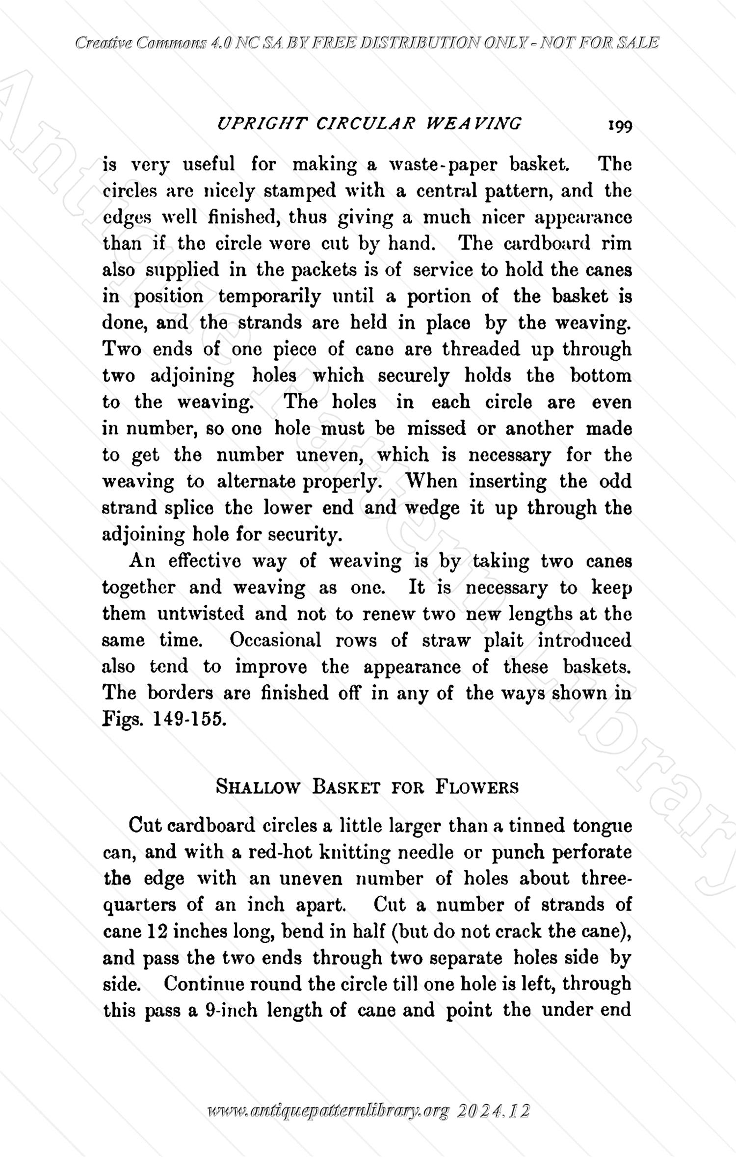 Small hardcover bound book, containing instructions on how to teach little children paper plaiting, weaving, chair caning and straw work. Many illustrations. Some sections talk of "children" in general, others are focused on "girls" or "boys". Added instructions on how to make useful and decorative objects from the completed work pieces. Quite useful to help occupying children from kindergarten age at home or in the classroom.