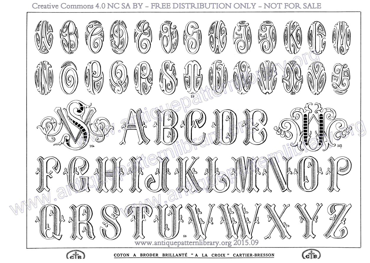 Faboulous rare Wolf Dupeyron album for initials and monogrammes. Several complete alphabets as well as many examples of monograms easily adaptable to other initials. No date given, looks a bit like it's a later album, although not the latest - Filet Ancien 10 11 and 12 are not mentioned in the list of earlier publications. The original colors are dark brown on cream.