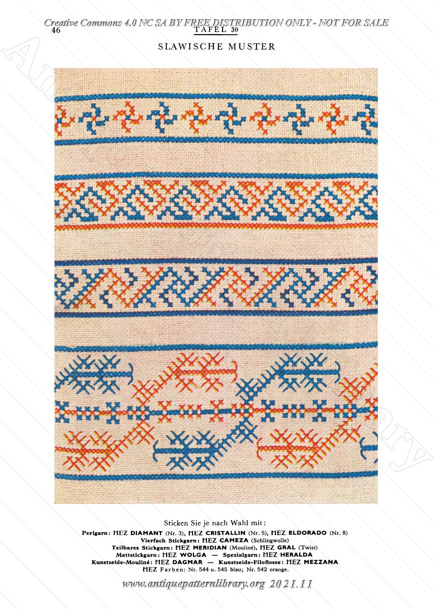 Softcover book, 90 numbered pages. Short description of how-to execute different cross-stitch variations and then 68 color plates of antique cross-stitch patterns newly executed. Some close-ups and charts included. Pattern sheets were to be sold separately and are not present here.