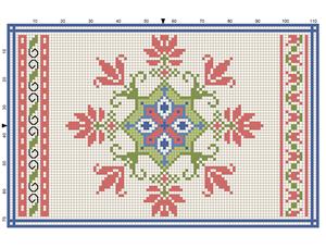 Eight patterns from an incomplete leporello. No cover, some pages detached. Paper brittle and darkened. The reverse side has blue alphabet patterns that are duplicates of other Heinrich Kuehn leporellos, and have been omitted. Although the patterns were printed in three colors, there's four shades of red, two shades of green and three shades of blue, although not all shades are used in every pattern.