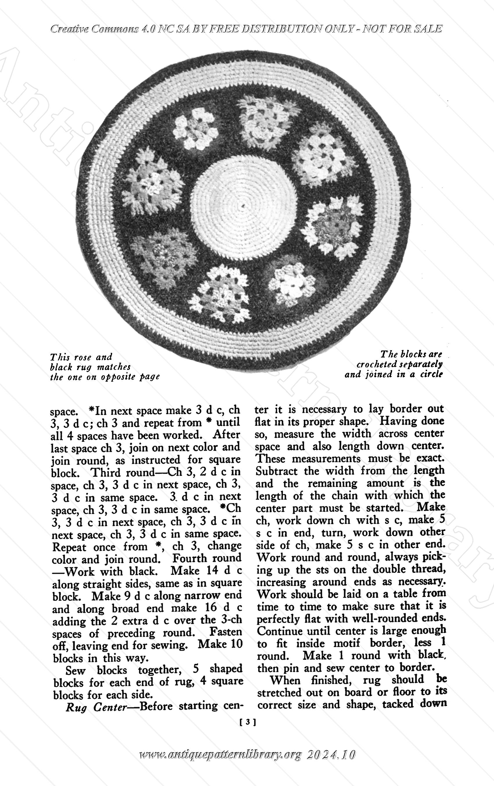 Small stapled booklet, 24 pages not including covers. Handmade Rugs, Crocheted, knitted, braided, hooked and embroidered. As the introduction says, making modern reproductions whch, while quite as lovely as the old rugs, have been simplified in design and workmanship to fit the needs of the needlewoman of today. There's a Halloween witch rug pattern and one that clearly is from before WW2 which would not be suitable to make and display in modern times. For the footstool covers smaller Berlin woolwork floral patterns can be used instead of the patterns offered for sale here, which will no longer be available.