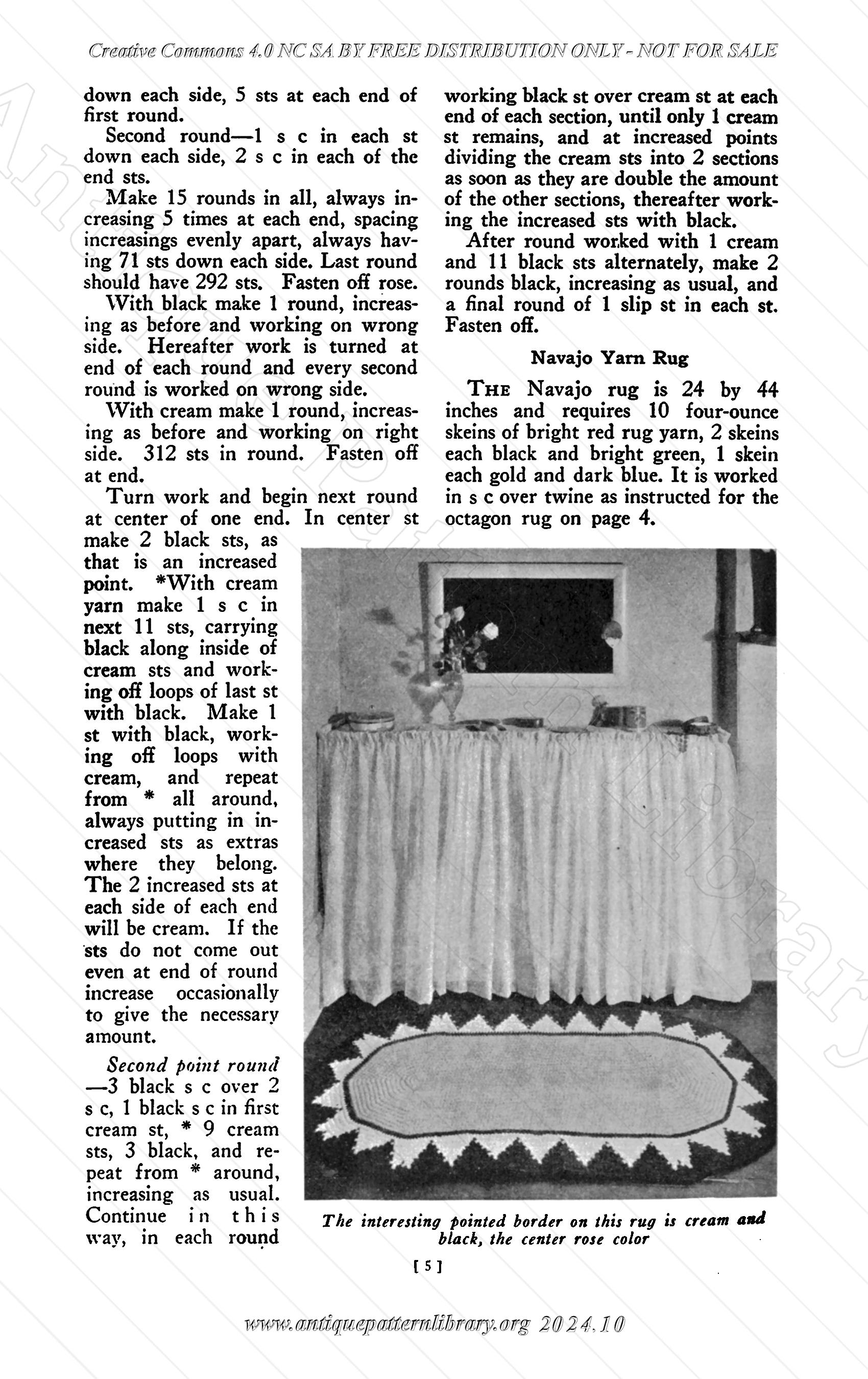 Small stapled booklet, 24 pages not including covers. Handmade Rugs, Crocheted, knitted, braided, hooked and embroidered. As the introduction says, making modern reproductions whch, while quite as lovely as the old rugs, have been simplified in design and workmanship to fit the needs of the needlewoman of today. There's a Halloween witch rug pattern and one that clearly is from before WW2 which would not be suitable to make and display in modern times. For the footstool covers smaller Berlin woolwork floral patterns can be used instead of the patterns offered for sale here, which will no longer be available.