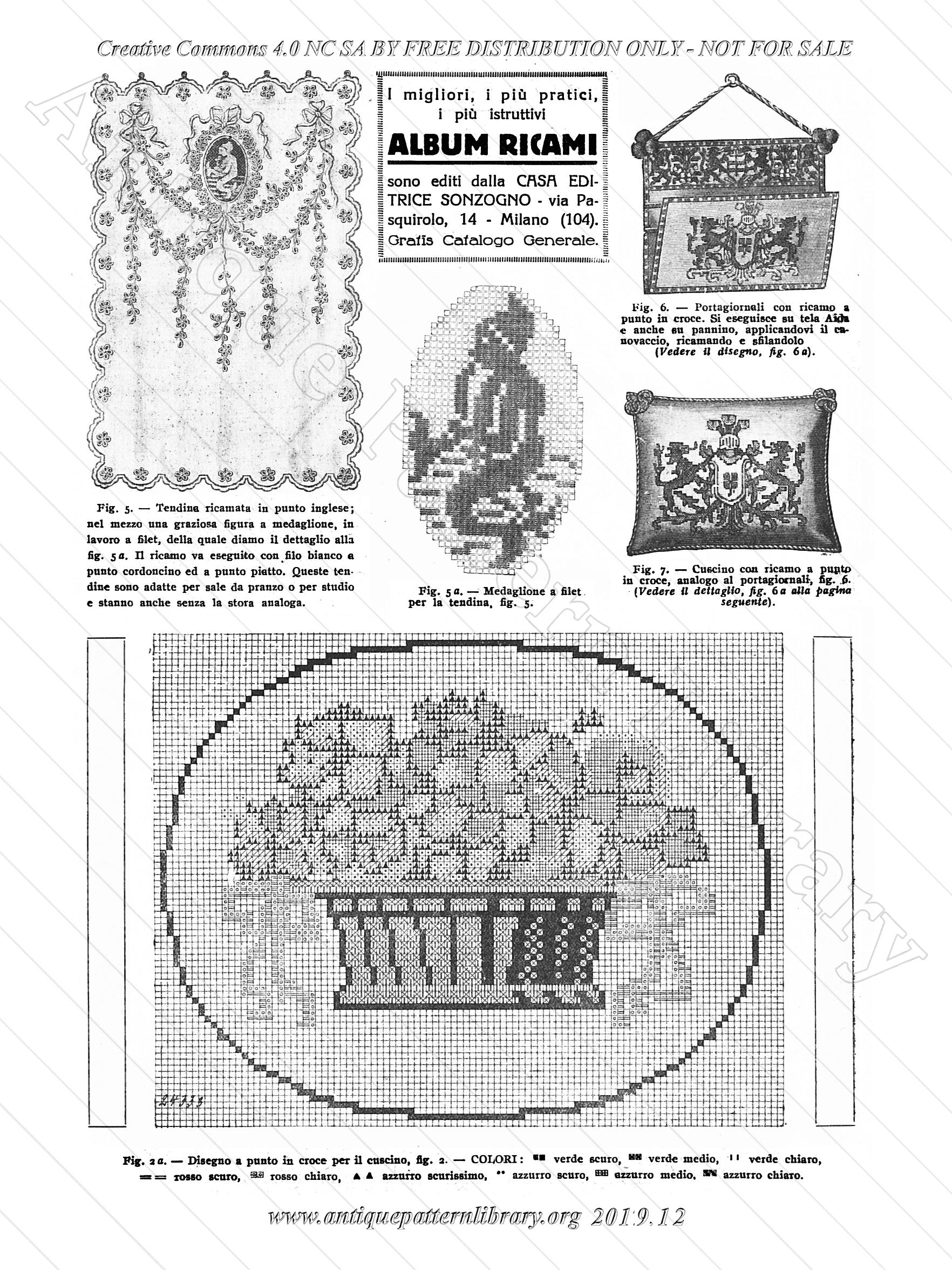 Softcover, 32 pages excluding cover. Catalog of cross-stitch patterns, some with charted designs, others with order number and price.