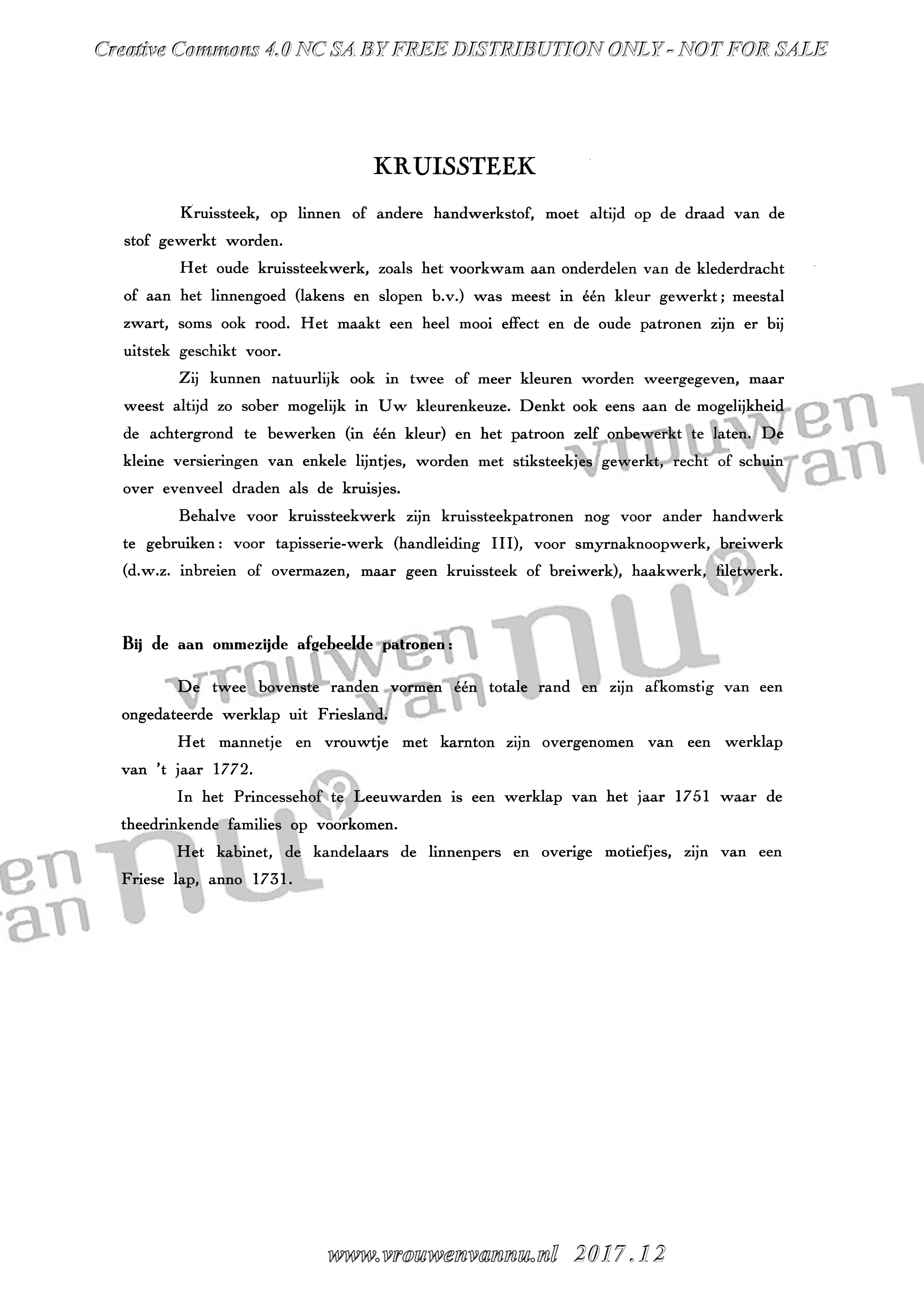 24 plates of Dutch folk art motifs, including 12 plates of cross stitch motifs taken from antique samplers. The others show cookie shapes, bent iron work, and other surface and withdrawn thread/darned embroidery and cutwork embroidery patterns from clothes. The flyer announcing the intial pulbication is also included.