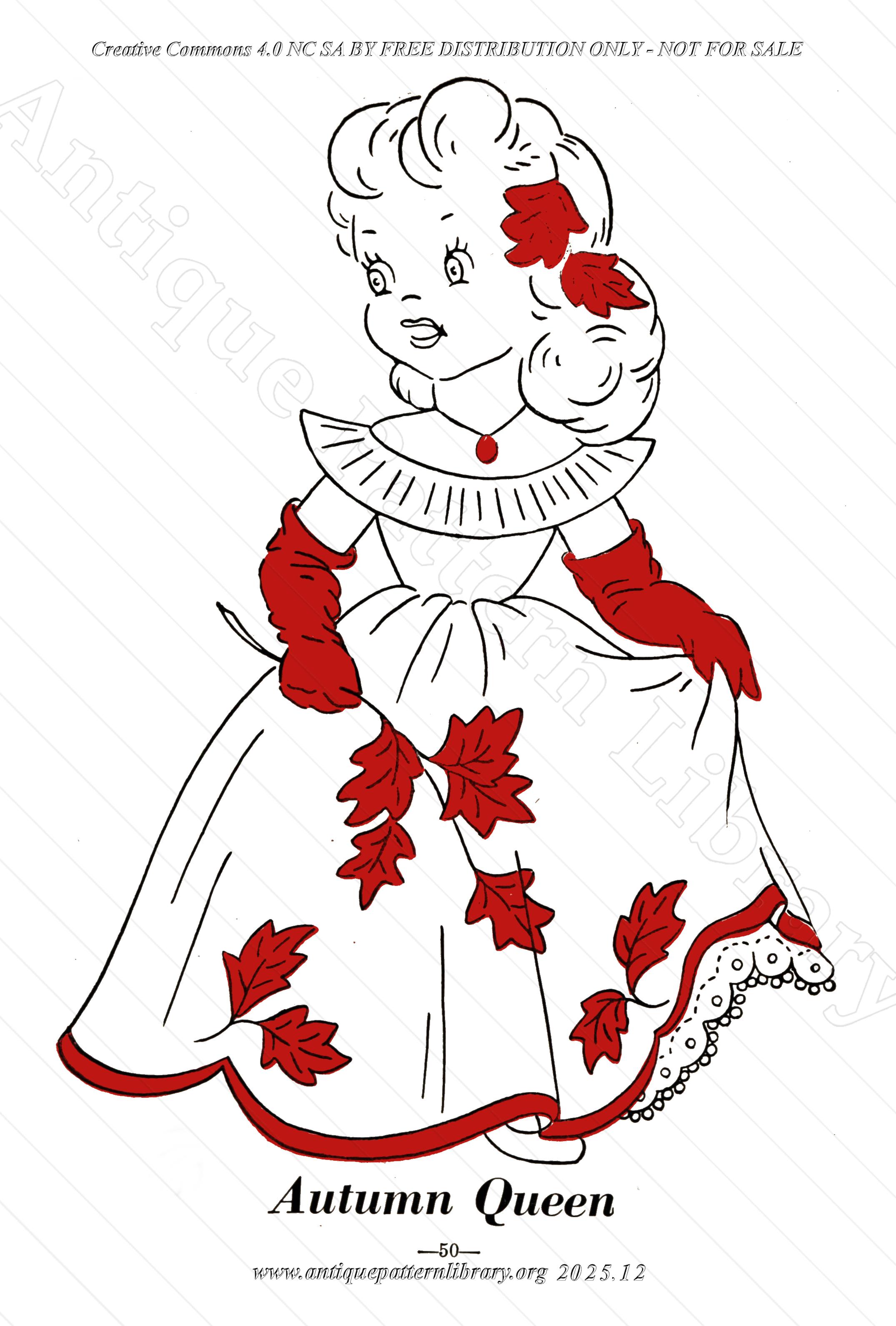 Embroidery: Cross Stitch Rug with astrological symbols, Knitting: Infants' 3-Piece Set, bonnet, jacket, booties. Crochet: Flower Earrings, Ruffle Doily. Paper: Crepe Paper Rope Craft. Crochet: Corner Edging, Terry Cloth Laundry Bag, Aunt Ellen's Club Notes, Christmas Party in October. Recipes: Sweet Potato Pudding, Harvest Punch, Apple Cup Cakes, hamburgers. Crochet: Versatile (round) Medallion. Tatting: tatting and lace edge. Ribbonwork: Clock Book Mark. Leathercraft: stitching, bookmark, belt. Embroidery: Autumn Queen. Bookbinding: Binding Workbaskets. Dollmaking: Apple Granny Dolls. Crochet: Square Doily. Sewing: Various Kinds of Edge Finishes.