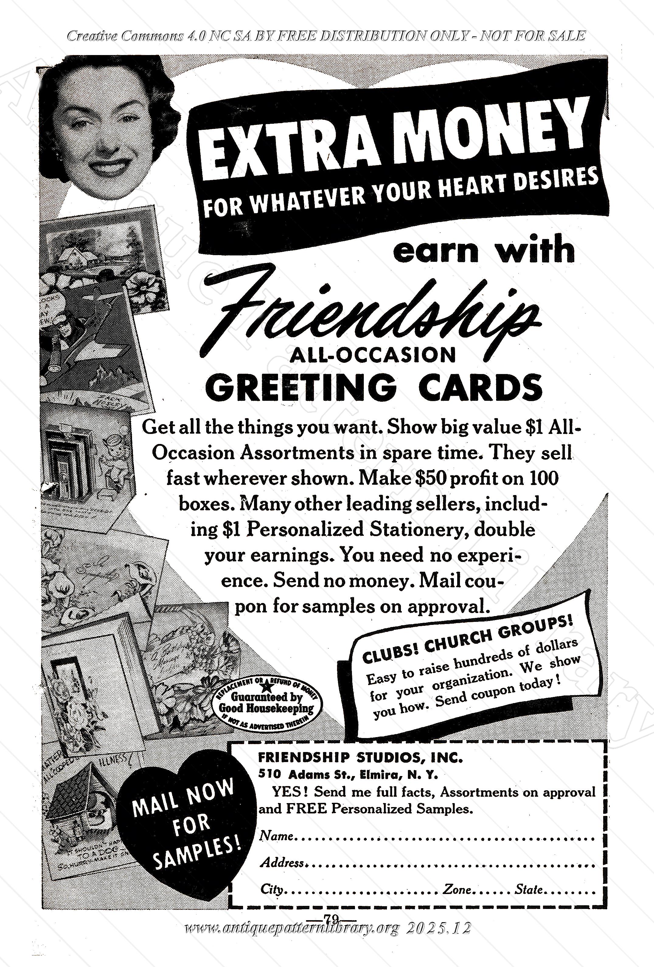 How to make a crocheted place mat, attractive Pansy Pan Holder, crocheted Sandals. Also, filet crochet handkerchief trim with a tatted edge, crocheted Iris and Cross Doily, Two Color Knitted Mat, Cardigan in Crochet, Make Your (hooked) Rugs, explanation about US beef grades, recipe for Beef Stew. Aunt Ellen's Club Notes: article about the organization of Bake Sales as a way of making money. Hat making: small hats out of big ones. Tatted Doily (actually tatted edging around linen circle. Crochet: Dresser Scarf with Butterfly Trim. Some Knitting Tips, Stitching Names on Shirts, Knitting for Tots, Crocheted Insertion for Baby, another Filet Corner Handkerchief Trim. Sewing: Apron made from handkerchiefs, an article about Hemstitching by hand, and so many advertisements!