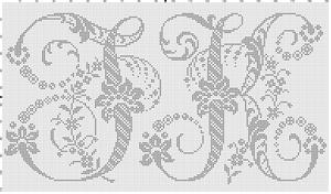 16 pgs. Three charted cross-stitch alphabets; monochrome; a very large floral script; a medium size blackletter; a large, ornameted serif.