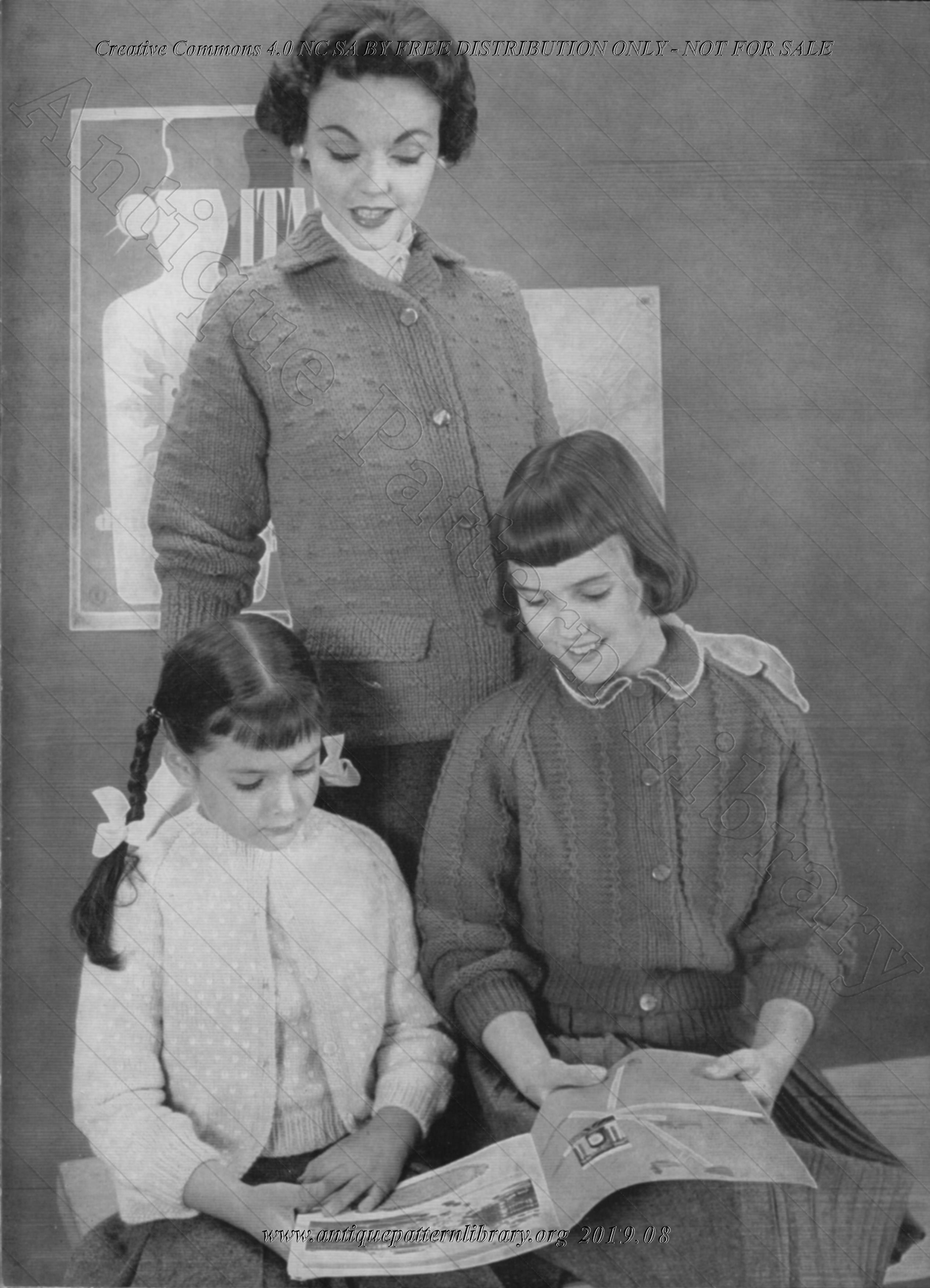 60 pages. Leaflet about interchangeable yarns stapled to cover (4 extra pages). All knitting: dresses, pullovers, vests, sweaters.