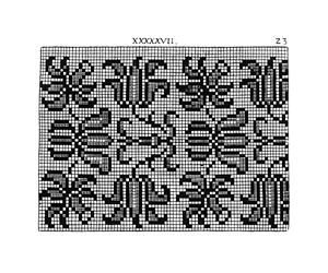 Antique so-called Modelbuch printed in 1660, 50 pattern pages. First volume. Most patterns are for cross-stitch or filet work, and the last eight are for needle lace. Page 6 and 7 missing in original, have been added from a copy on archive.org