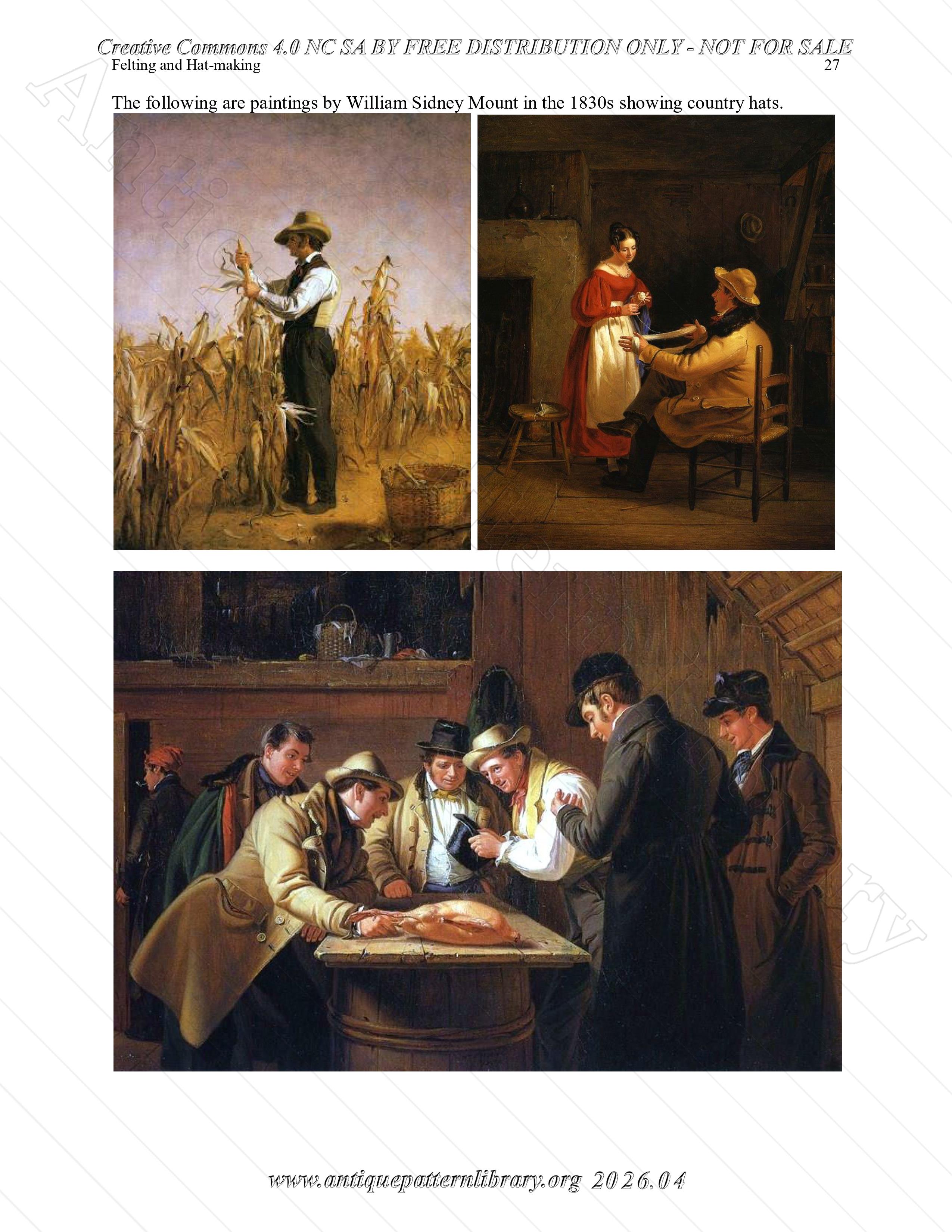Making felt from wool, small balls, flat piece, hollow objects and then felt hats. Styles, sizes, shaping hats, sewing in sweat band, care of a felt hat. Additionally a note on the 1830s code of hat wearing. Richly illustrated.