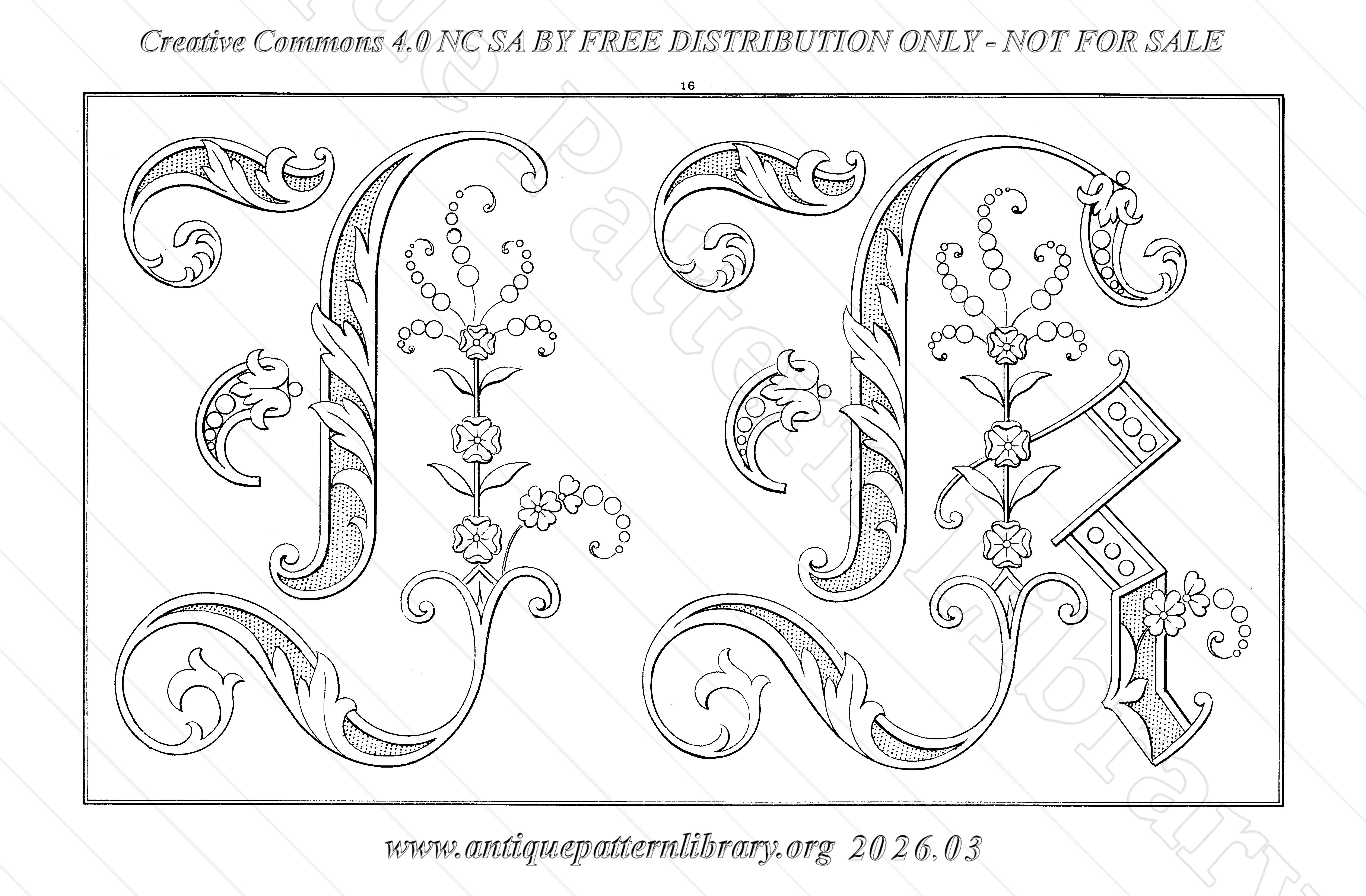 A single very decorative alphabet in three different sizes, for handkerchiefs and napkins, towels and pillow covers, and sheets. Border designs as space filling, and the last page a border and a corner design. All whitework.