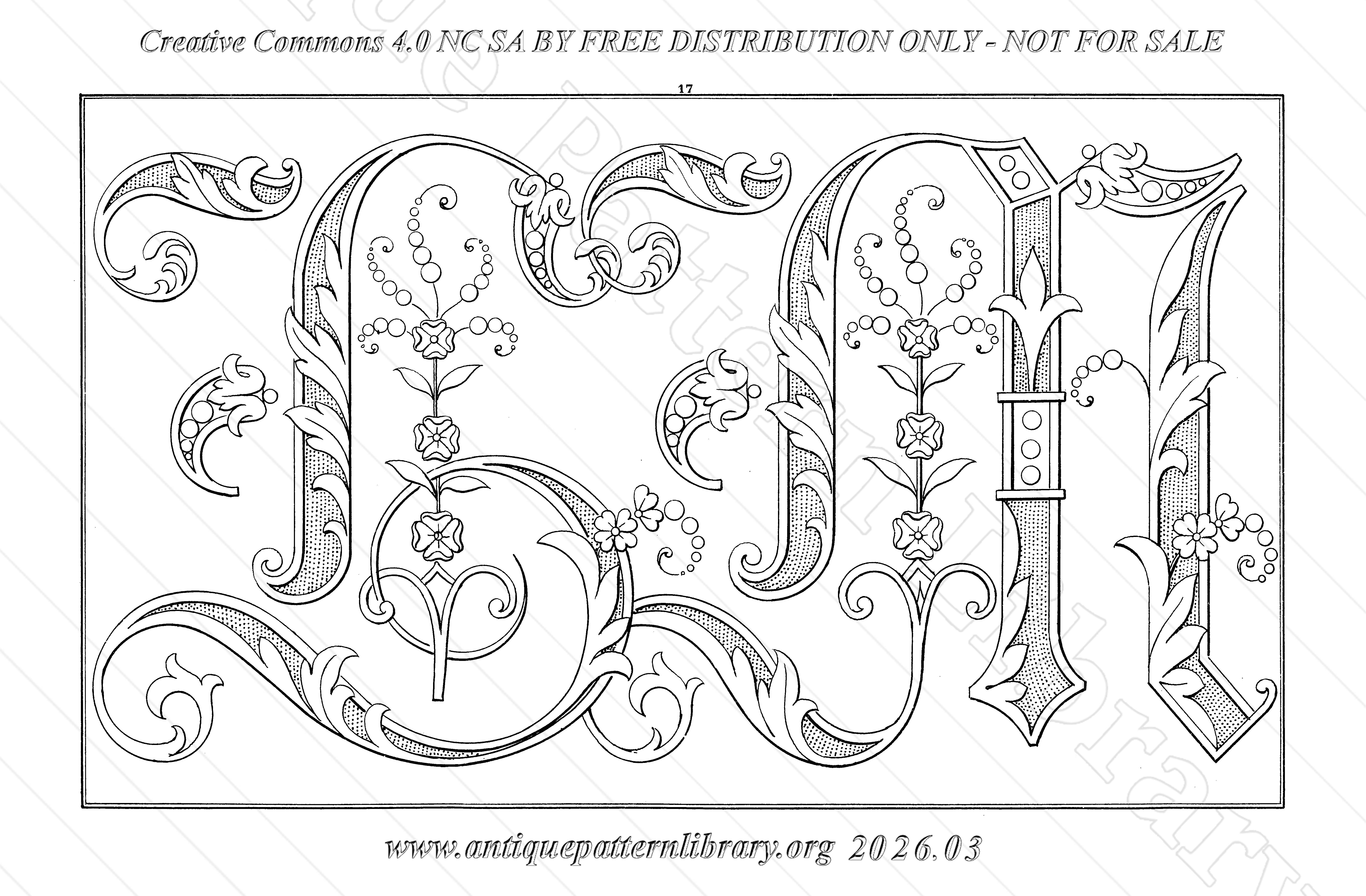 A single very decorative alphabet in three different sizes, for handkerchiefs and napkins, towels and pillow covers, and sheets. Border designs as space filling, and the last page a border and a corner design. All whitework.