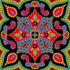 Handpainted square embroidery pattern on grey paper. Nine colors, no indication which colors were intended to be wool and which Filoselle, probably the yellow and white colors judging from similar embroideries. Beading would also be great for accents. The pattern is symmetrical, but shown complete.