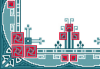 Single sheet, printed in blue. A corner with paisley figures, and two different square designs filling in the opposite corner in a chessbord placement. Both could be used separately. From the print it's clear that this is for filet crochet, but the chart can also be used for filet, cross-stitch or similar counted work.