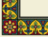 Six patterns in dark and light red shades, borders, corners, two cartouches and some small diamond motifs.